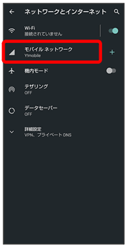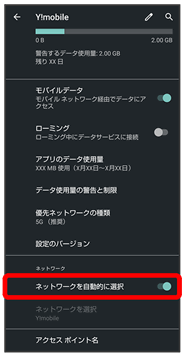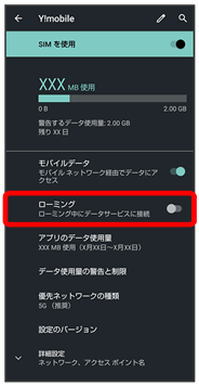 その他、必要に応じて通信事業者、ローミングの設定を変更してください。