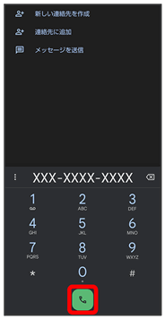 • ↓ダイヤルキーをタップして相手の電話番号を入力
