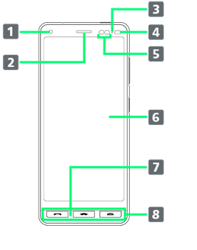 | 電話やメールを起動したり、ホーム画面を表示します。 |