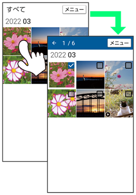 アイコンなどの対象物に軽く触れたまま、目的の位置までなぞり、指を離します。