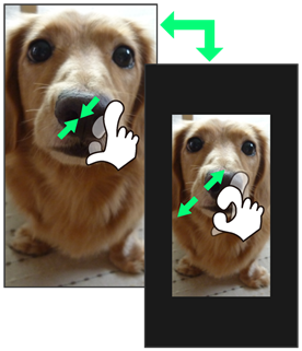 2本の指で画面に触れ、指を開いたり閉じたりします。