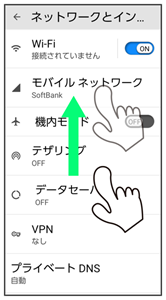 画面に軽く触れて、上下左右に指を軽くはじきます。