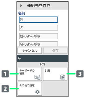 テンキーボード/QWERTYキーボードをタップします。 - キーボードを非表示にするには、戻るをタップします。