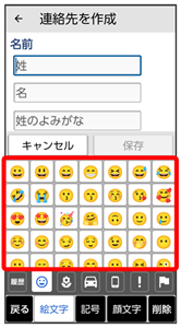 - 絵文字/記号/顔文字のリストを表示します。ロングタッチすると引用入力を利用できます。