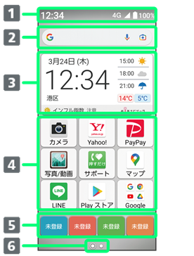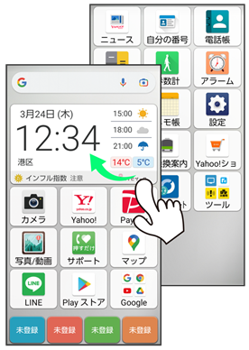 ホーム画面を左右にフリックすると、ホーム画面シートを切り替えることができます。