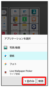 - 画像を選択をタップすると、本体やSDカードに保存された画像を壁紙に設定することができます。画面の指示に従って設定してください。