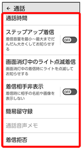 通話に関する設定ができます。設定できる項目は次のとおりです。