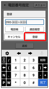 - 電話帳/通話履歴をタップすると電話帳/通話履歴から電話番号を入力できます。