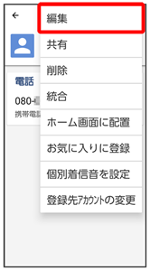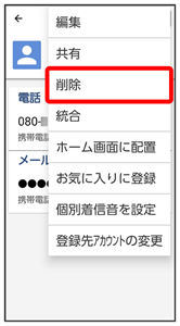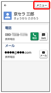 - お気に入りから削除する場合は、連絡先詳細画面でメニュー