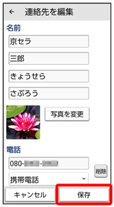 | タップすると、連絡先詳細画面が表示されます。 | ||