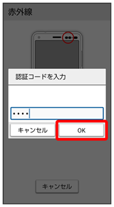 - 認証コードは、正しい通信相手かどうかをお互いに確認するための暗証番号です。送信側/受信側で同じ数字(4桁)を入力します。特に決まった数字ではなく、その通信限りのものです。