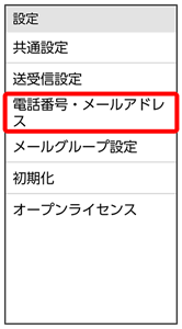電話番号・メールアドレス画面が表示されます。
