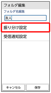 • 受信フォルダ、送信フォルダ、下書き/未送信フォルダには振り分け条件を登録できません。