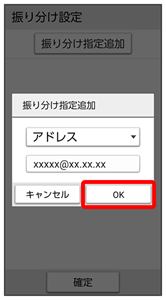 • 再度振り分け指定追加をタップすると、振り分け条件を追加できます。