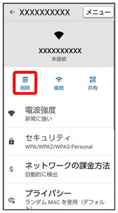 - アクセスポイントを削除すると、再接続のときにパスワードの入力が必要になる場合があります。