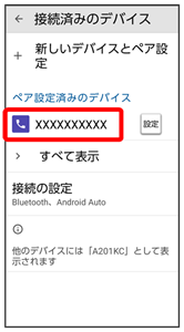 「ペア設定済みのデバイス」欄に、ペア設定済みの機器が表示されます。
