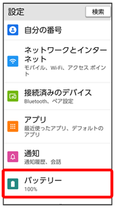 電池の消費を抑える設定や、電池の使用状況を確認できます。