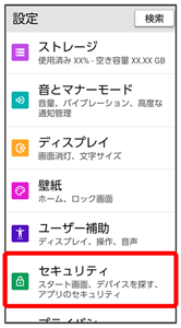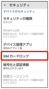 | デバイス管理アプリ | 端末を管理するアプリの確認と、有効/無効の設定をします。 | |
