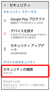 | Google Play プロテクト | 本機をスキャンしてセキュリティに問題がないかを確認するかどうかを設定します。 | |