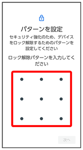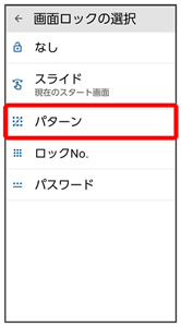 パターンを指でなぞってスタート画面のセキュリティを解除するように設定する