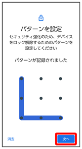 - パターンを指でなぞってスタート画面のセキュリティを解除するように設定する