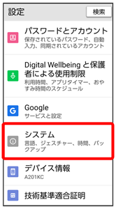 言語と入力や日付と時刻、バックアップ、リセットなどシステムに関しての確認や設定ができます。