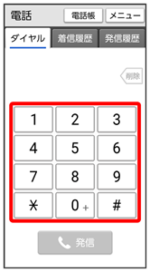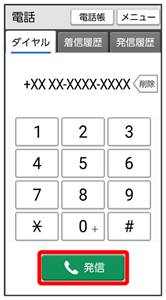 - 国番号のあとに相手の電話番号(先頭の「0」を除く)を入力