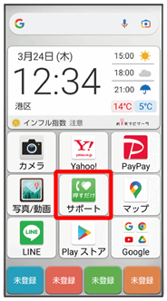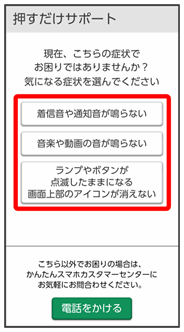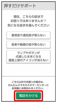 「サポート」アプリをタップするだけで、本機の症状を確認してくれます。症状を改善できない場合は、アプリから直接「かんたんスマホ カスタマーセンター」に電話をかけることもできます。「かんたんスマホ カスタマーセンター」への通話は無料となります。
