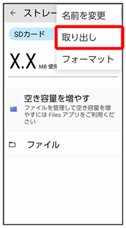 SDカードを取り外すときは、必ずマウントを解除してください。
