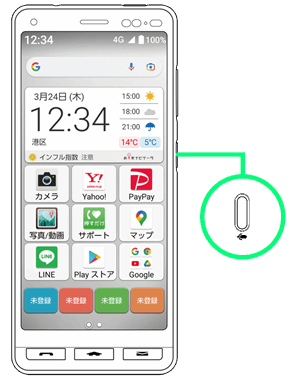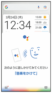 (音声検索ボタン)を押すと、Google アシスタントが起動し音声で情報を検索したり、機能を利用できます。