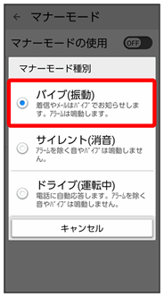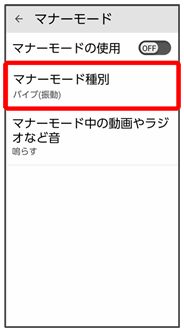 • ステータスバーを下にフリック→マナーと操作しても、マナーモードの設定/解除ができます。