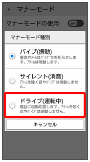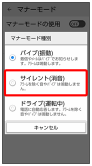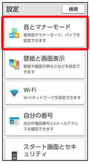 • ホーム画面でkantan-sumaho-2-plus_icon_002(設定)→音とマナーモード→マナーモード→マナーモードの使用と操作しても、マナーモードの設定/解除ができます。