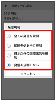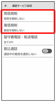 | 発信規制・着信規制 | 電話発着信を状況に合わせて制限できます。 |