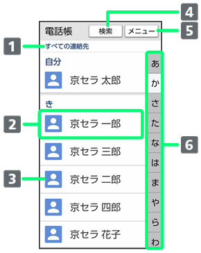 | タップすると、連絡先詳細画面が表示されます。 | ||