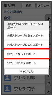 SDカードに保存(バックアップ)した電話帳データを読み込み(インポート)できます。