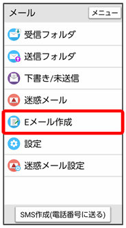 メール作成中にメニュー→下書き保存と操作すると、作成中のメールを下書きとして保存します。