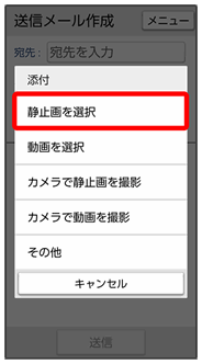 • 動画を選択と操作すると、データフォルダから動画を選択して添付できます。