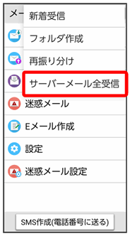 メールやSMSは、自動的に受信されます。また、手動で受信することや、サーバーに保存されたメールを受信することもできます。
