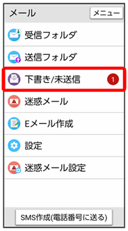 送信失敗したメールや下書きとして保存したメールの確認、編集をします。
