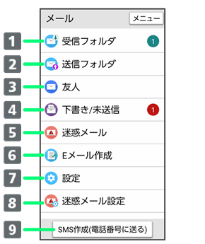 メールメニュー画面の見かた