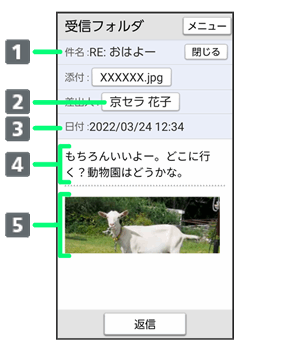 • ↓受信メール詳細画面で