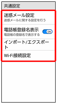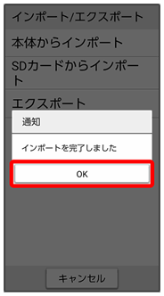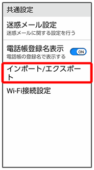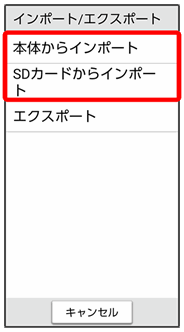 インポート/エクスポート メールデータを本体メモリやSDカードからインポート、エクスポートします。