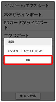 • SDカードを取り付けていないときは、本体メモリにエクスポートされます。
