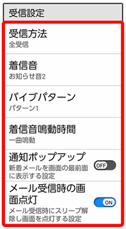 メール受信時に通知ポップアップを表示させるかどうかを設定する