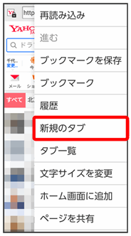 • タブを切り替えるには、メニュー→タブ一覧をタップして対象のタブをタップします。
