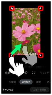 写真をドラッグして、切り出す枠内で位置を調整することもできます。