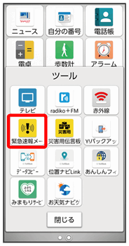 メッセージが表示され、緊急地震速報/災害・避難情報個別の警告音およびバイブレータでお知らせします。