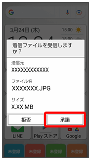 が表示されます。次の操作を行うと、受信することができます。