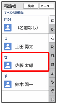 電話帳画面が表示されます。
