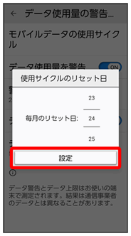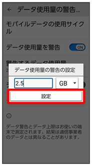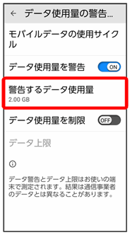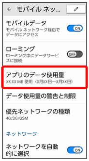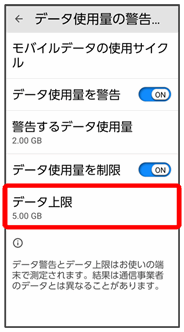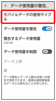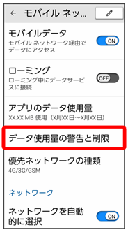 モバイルデータ通信の使用量を確認したり、使用を制限することができます。